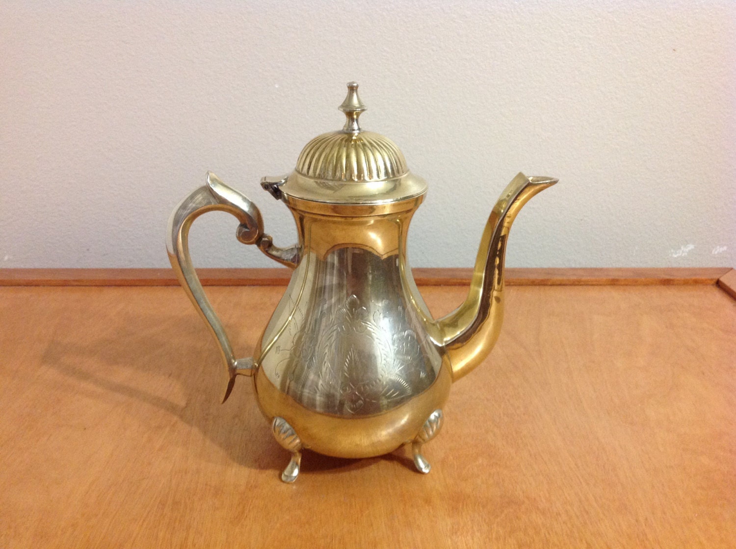 Vintage Gold Brass Teapot Traditional English Style from India with