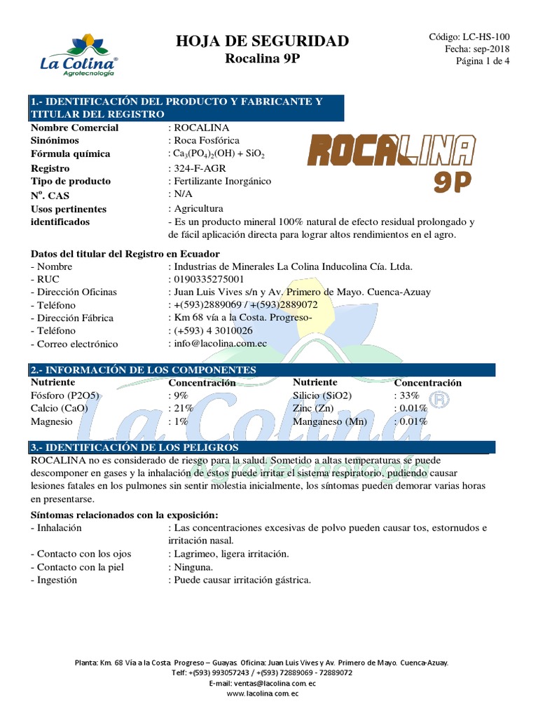 Hoja de Seguridad Rocalina 9P LCHS100 PDF Agua Contaminación