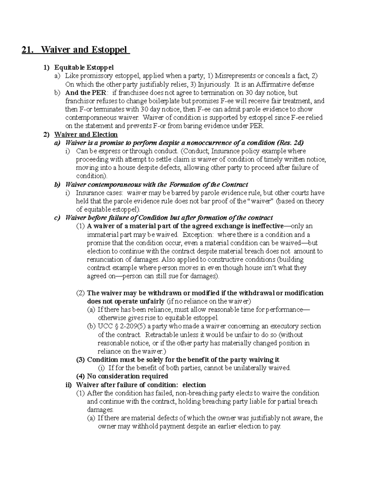Contracts Law Outline 3 21. Waiver and Estoppel Equitable Estoppel