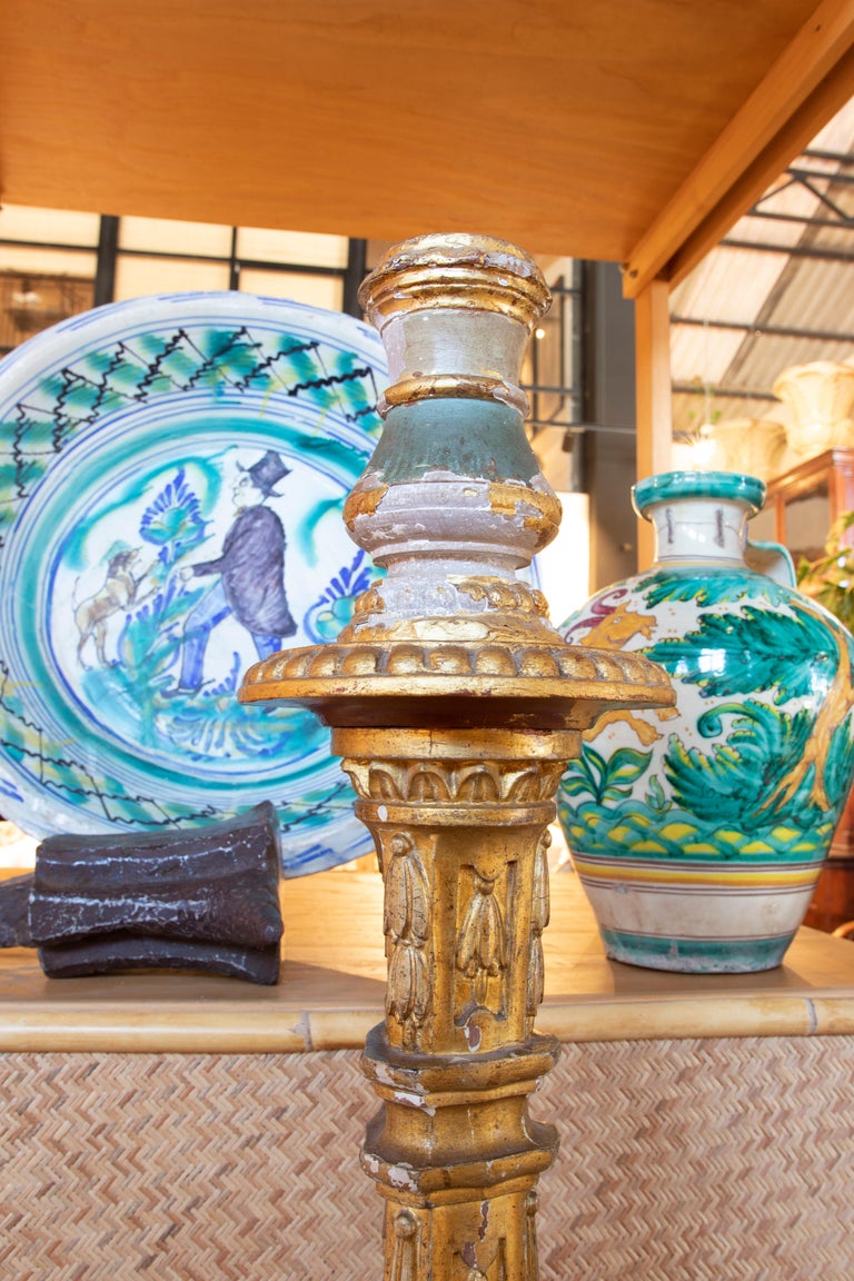 18th Century Portuguese Wooden Candle Holder with Traces of Polychromy