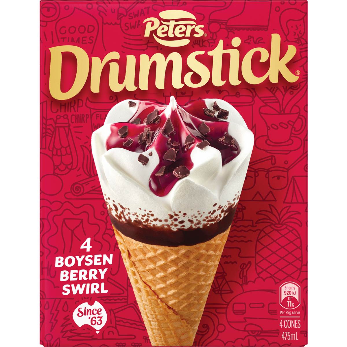 Peters Drumstick Ice Cream Boysenberry Swirl 4 Pack Woolworths