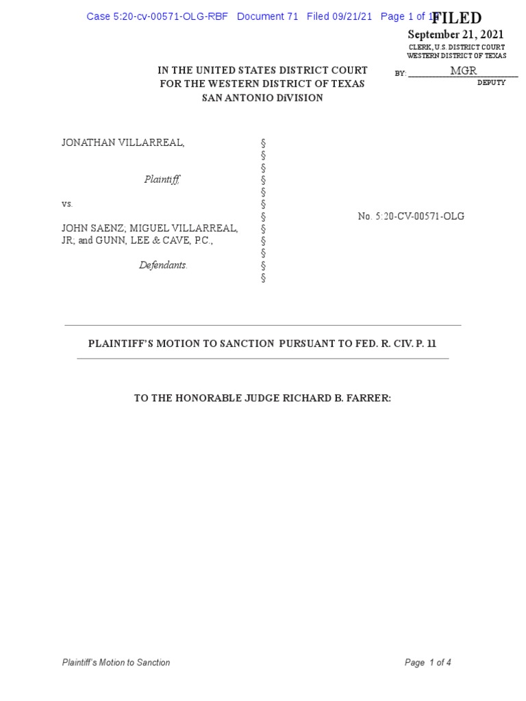 Plaintiff's Motion To Sanction Pursuant To Fed. R. Civ. P. 11 PDF