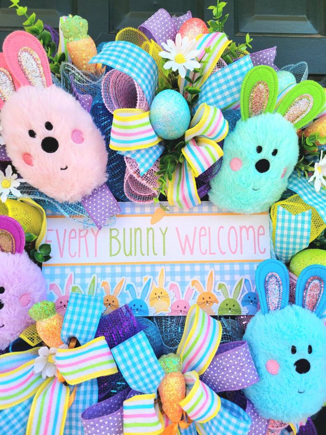 Large Pastel Easter Wreath With Bunnies Easter Bunny Door Etsy