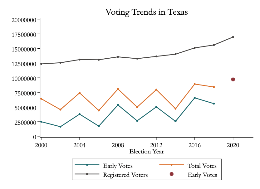 Early Voting In Texas 2024 Bexar County Glori Batsheva Texas Number Of Voters More than 18.6 million texans are currently registered to vote, according to the secretary of state’s office. Democratic turnout accounted for the entirety of the. “this is a record number. According to the texas secretary of state, more than 18.6 million texans are registered to vote as of november 2024. Texas has surpassed 18 million registered voters for the first. Texas Number Of Voters.
