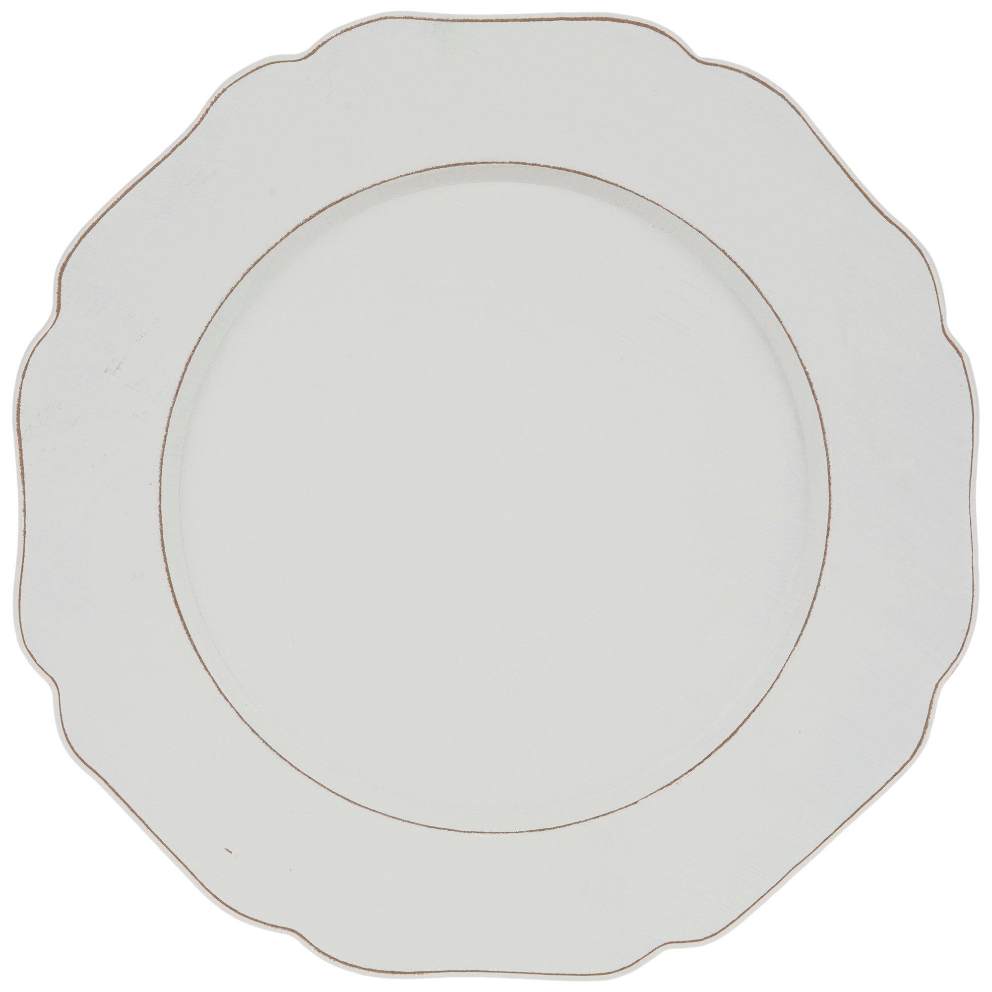 White Distressed Scallop Wood Charger Plate Hobby Lobby 2086783 Plate Chargers Hobby Lobby This plate charger boasts a plastic base and a faux leather face with a glossy finish. Hobby lobby red plate charger set of 4. Visit the hobby lobby store. Enhance your table setting with pieces such as this rope braid charger plate. Chargers protect the table from unnecessary clean up and help retain heat during a meal. Two lines of. Plate Chargers Hobby Lobby.