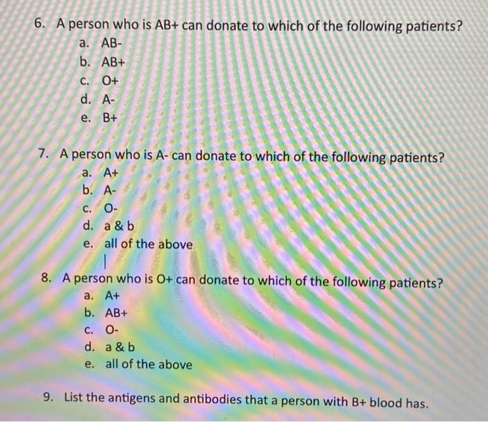 Solved 6. A person who is AB+ can donate to which of the