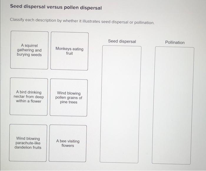 Solved Seed dispersal versus pollen dispersal Classify each