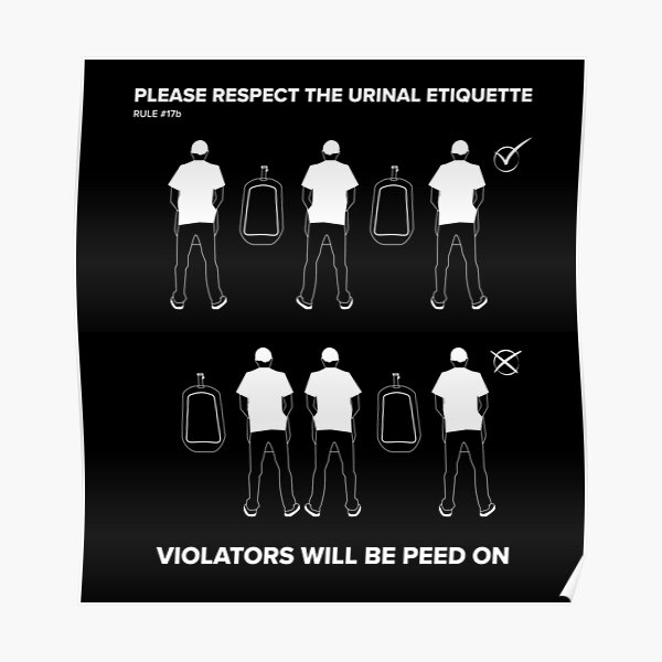 Urinal Etiquette A Guide To The Unspoken Rules Of Public Restrooms Urinal Etiquette Poster Shop affordable wall art to hang in dorms, bedrooms, offices, or anywhere blank walls. Unique funny urinal posters designed and sold by artists. Find & download free graphic resources for urinal poster. These posters provide reminders and. Check out our urinal poster selection for the very best in unique or custom, handmade pieces from our wall decor shops. Raise awareness. Urinal Etiquette Poster.