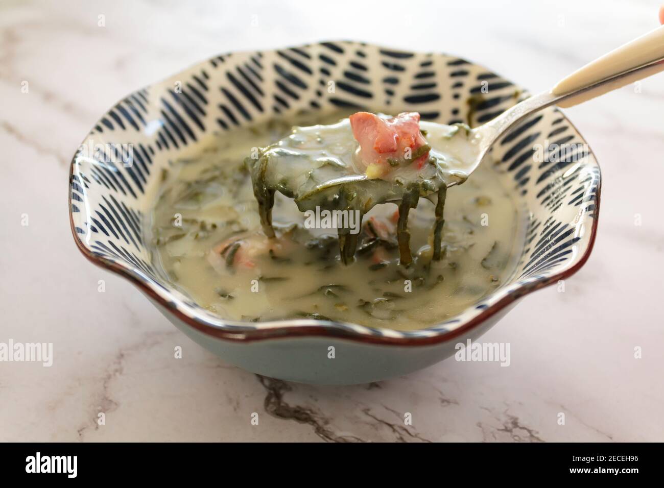Kale Portuguese Soup This kale soup recipe is based on a traditional portuguese kale soup with a few creative variations of our own. It tastes like um abraço (a hug), especially on a chilly day! It’s a popular portuguese soup made with collard greens (or kale), potatoes, sausage and bacon. This soup blends the earthy flavors of kale. Add potatoes, broth, and water. Kale Portuguese Soup.