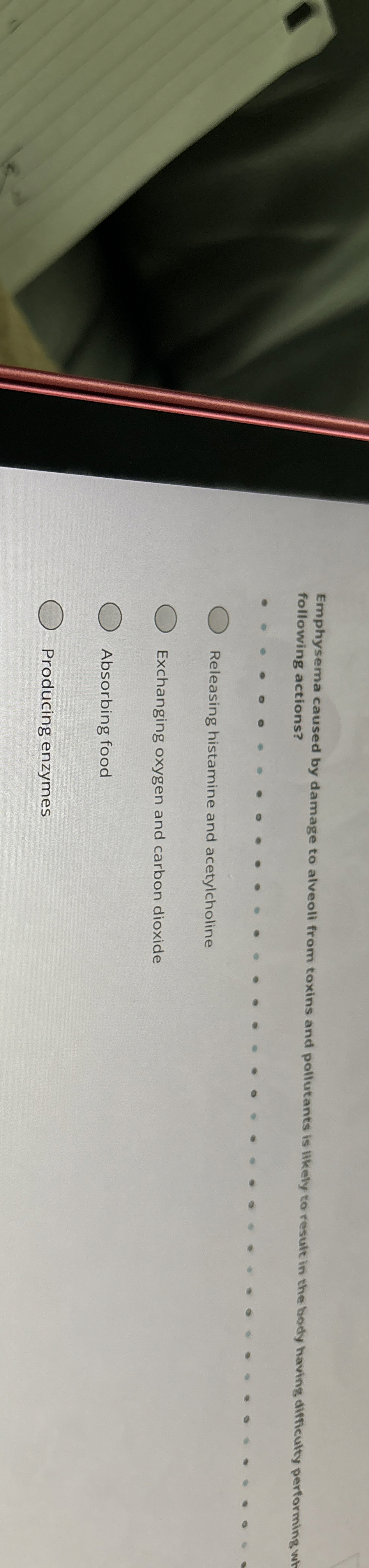 Solved Emphysema caused by damage to alveoli from toxins and
