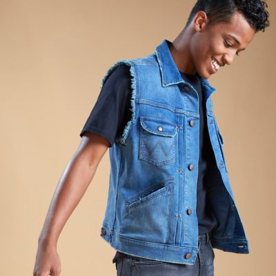 Men's Heritage Pleated Denim Vest Mens Jackets and Outerwear by Wrangler®