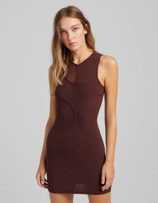 Bershka mesh bodycon dress in chocolate brown ASOS