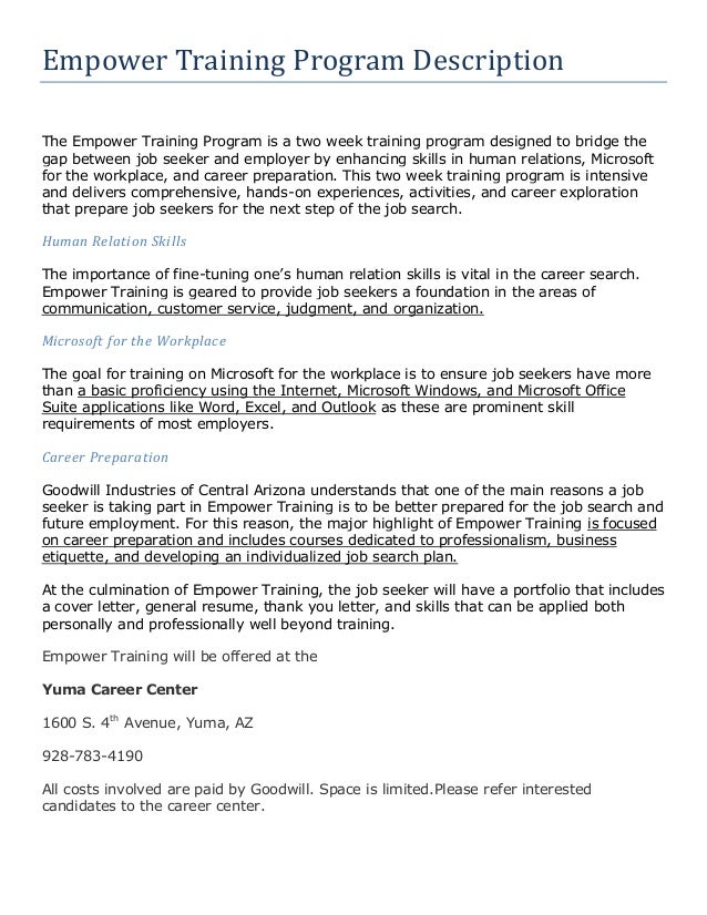 Empower training brief program description