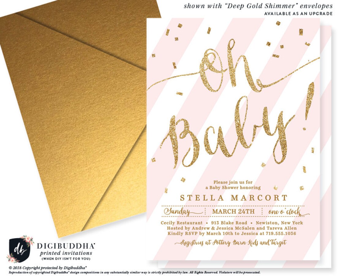 BLUSH & GOLD BABY Shower Invitations Oh Baby Pink Stripe Etsy