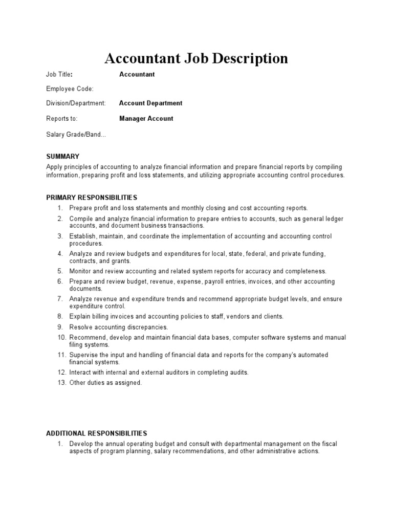 Accountant Job Description PDF Accounting Employment