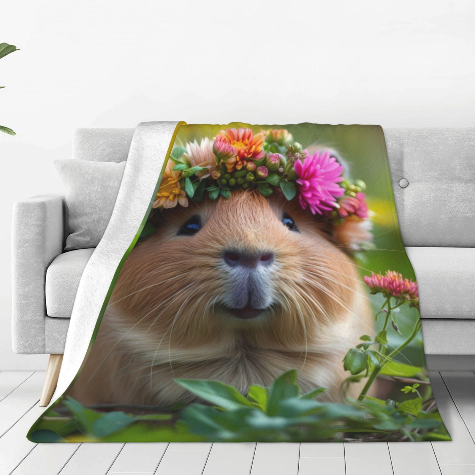 Zufioo Flower Crown Guinea Pig Fleece Blanket Queen Size,Plush Bed
