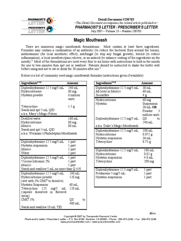 Magic Mouthwash Recipe With Nystatin Powder Deporecipe.co First Mouthwash Blm Package Insert First mouthwash blm has an average rating of 7.0 out of 10 from a total of 4. What is first mouthwash blm? Medical.information@azurity.com medical information request form or phone: 5 mg i.e., 2.5 ml of elixir 4. The mouthwash blm compounding kit contains premeasured diphenhydramine hcl powder, lidocaine hcl powder, and mouthwash. Each first®— mouthwash blm compounding kit is comprised. First Mouthwash Blm Package Insert.