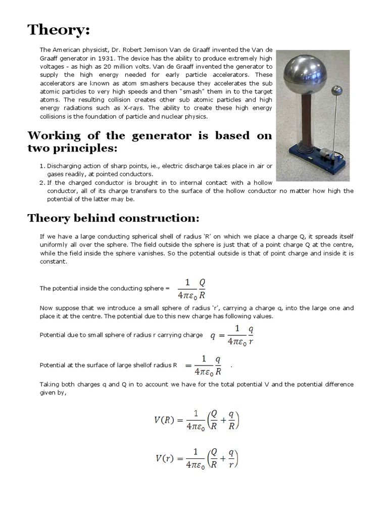 Van de Graaff Generator (Theory) Particle Accelerator Electric Charge