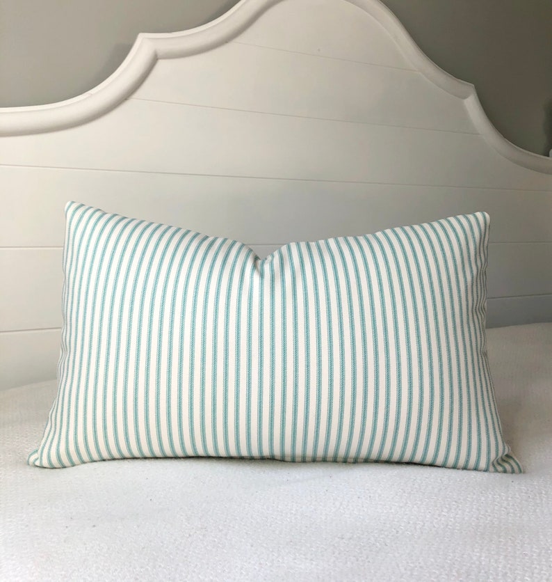 Aqua Lumbar Pillow Cover 12x20 Pillow Coverturquoise Ticking Etsy