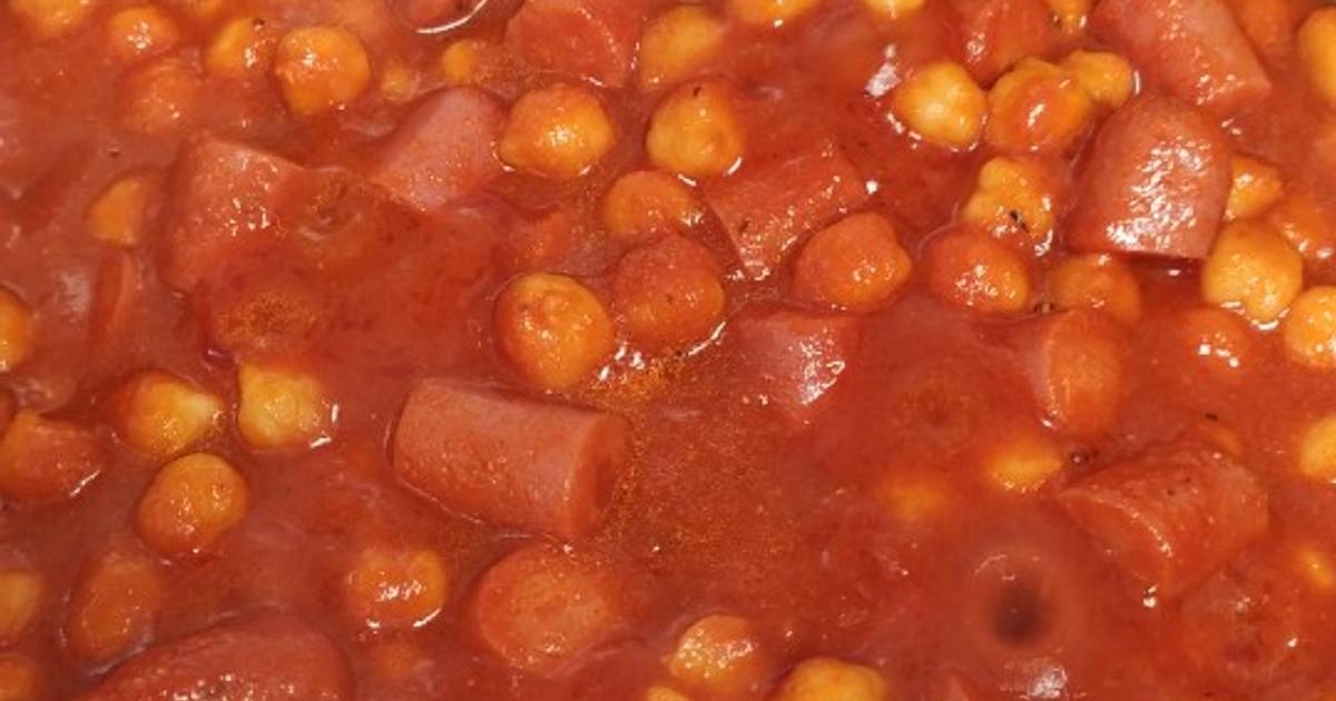 Garbanzos con tomate frito y frankfurts Receta de Lupe Murillo Cookpad