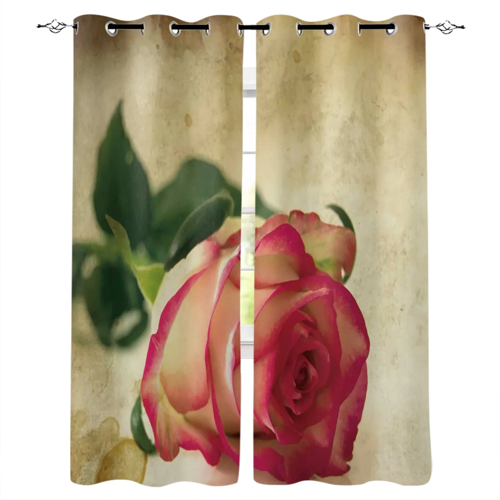 Rose Flowers Red Road City Beautiful Petals Window Curtains Scenic