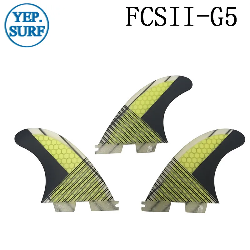 Surf Fins FCS II G5 ,yellow Fibreglass carbon Fiber Fin FCS 2