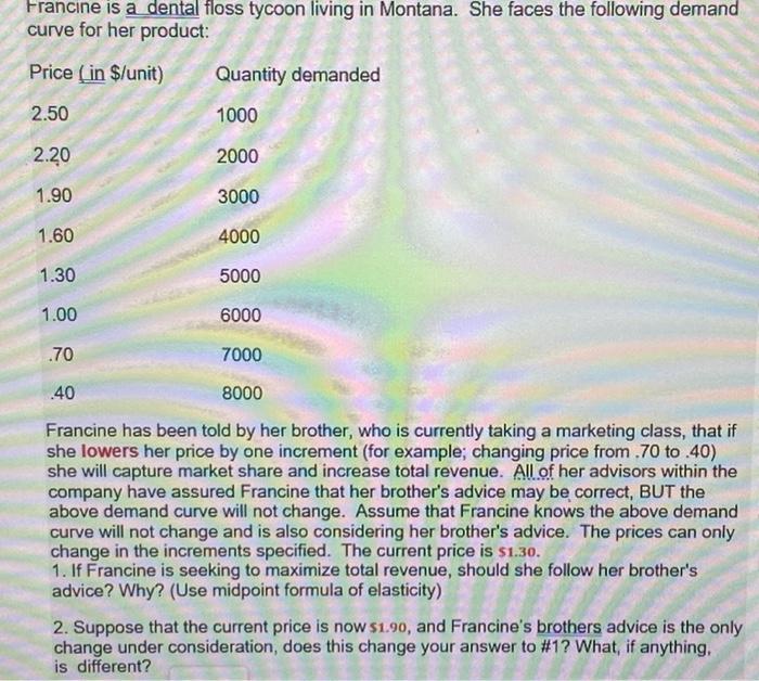 Solved Francine is a dental floss tycoon living in Montana.