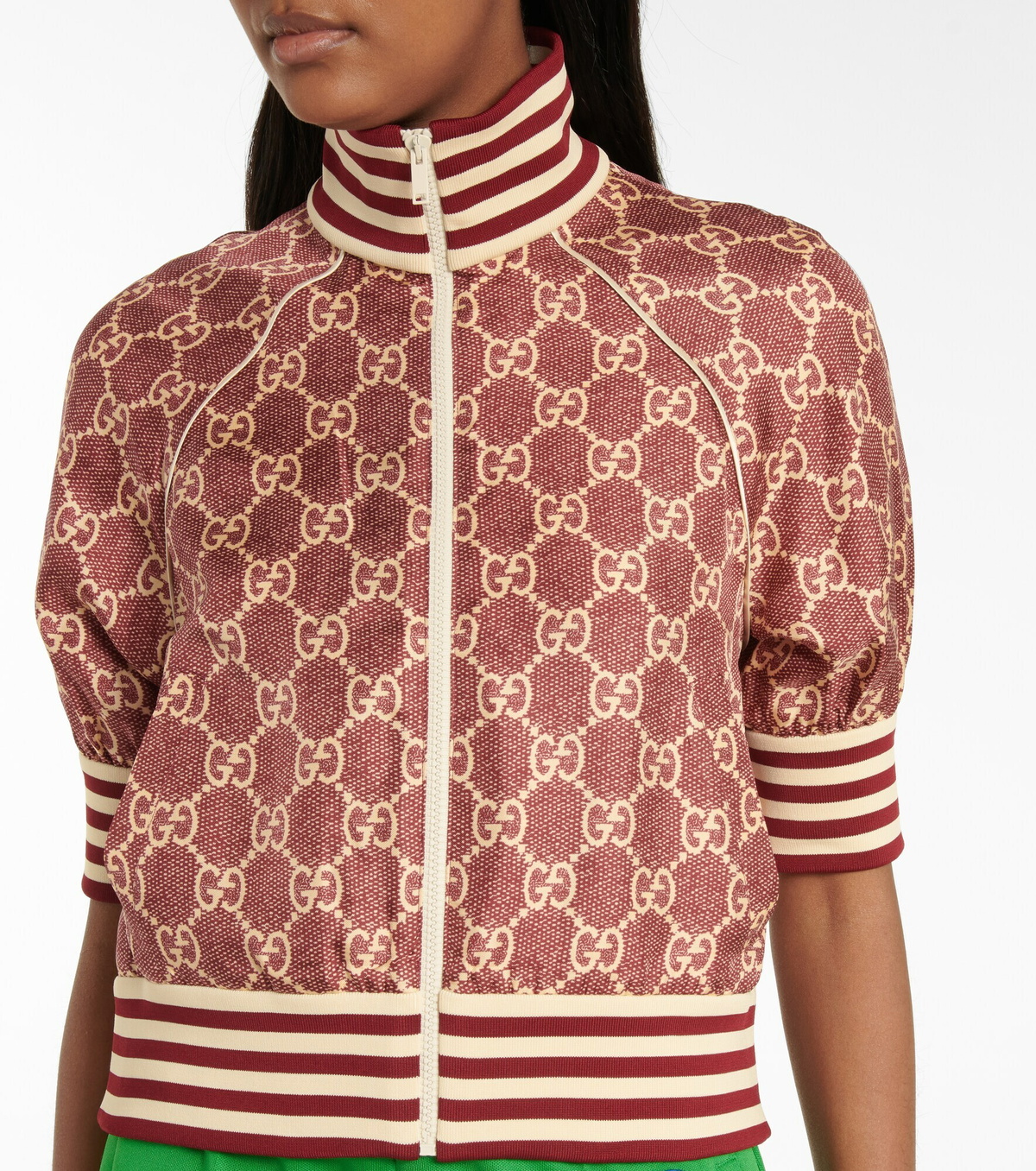 Gucci Track Jacket in Ivory & Green & Red FWRD Gucci Track Jacket discover the collection of women's activewear at gucci.com. Enjoy free shipping and complimentary gift wrapping. gucci interlocking g track jacket black/multicolour technical jersey signature interlocking cc logo. Enjoy free shipping, returns & gift wrapping. gucci track jacket in gg print technical jersey. shop gucci bomber and track jackets for women at net a porter, the ultimate. Gucci Track Jacket.
