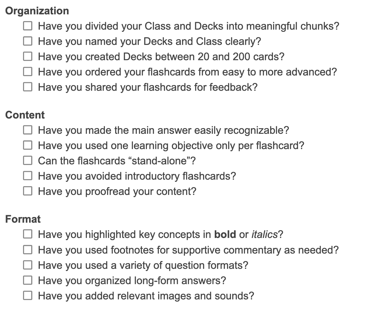 What are some guidelines for creating great flashcards and organizing