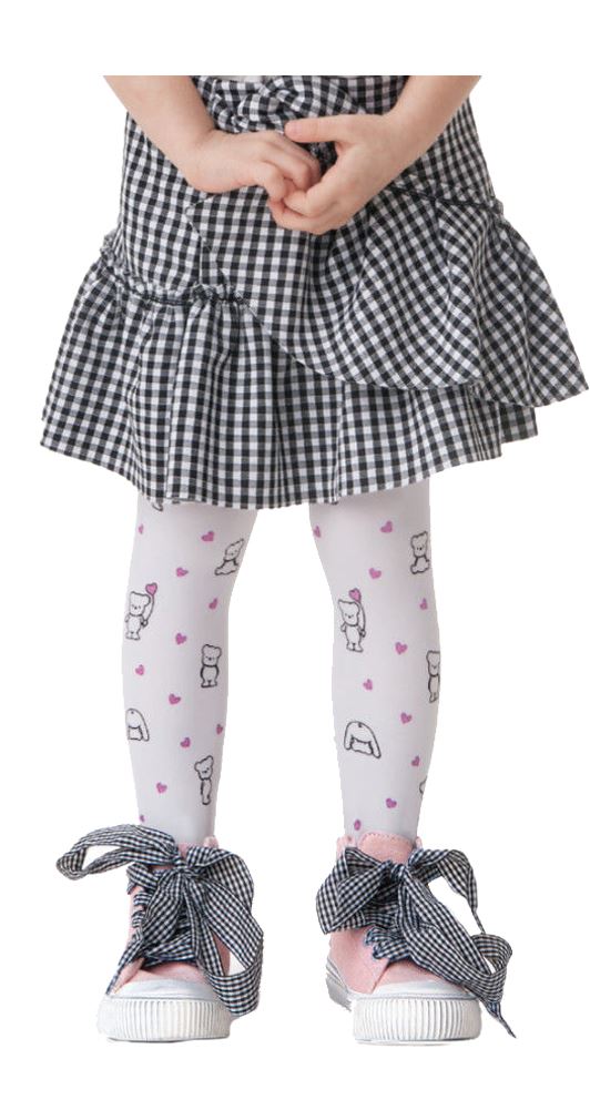 Girls White Tights By Knittex TEDDY 40 Den Microfibre Teddy Pattern
