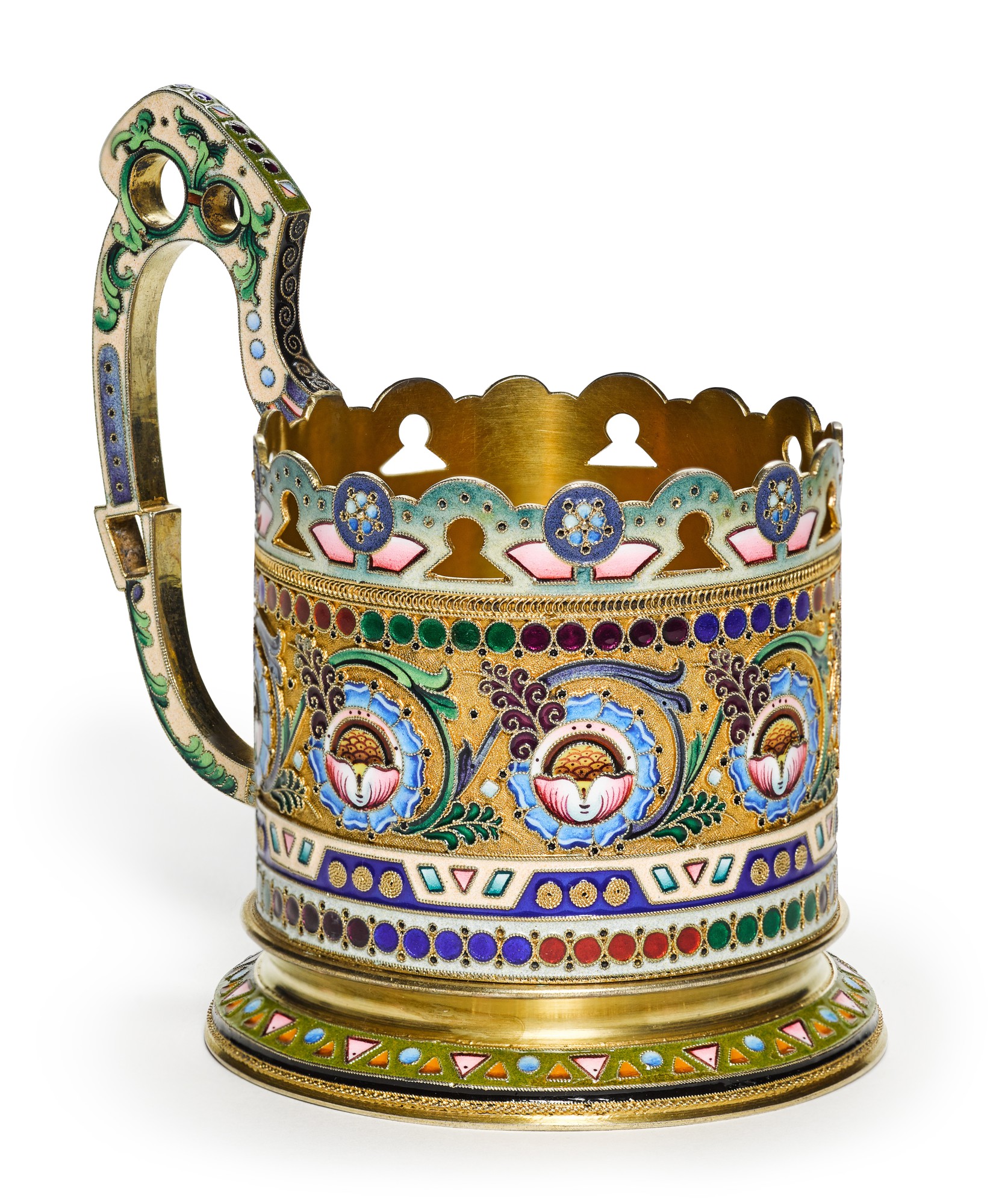 A RUSSIAN SILVERGILT AND CLOISONNE ENAMEL TEA GLASS HOLDER , MARK OF Russian Tea Glass Holder Enameled the filigree tea glass holders that we carry are hand made in the russian artisan village of kazakovo (nizhny novgorod, volga region). tea glass holders, called ‘podstakannik’ in russian, originated in the late 18th century when tea drinking became a popular culture in russia. After all, russia was one of. for more than 200 years, tea glass. Russian Tea Glass Holder Enameled.