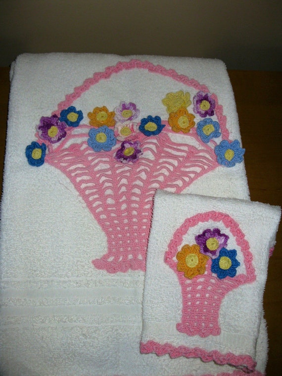 SWEET 1950s Crocheted Bath set towel and wash by oakiesclaptrap