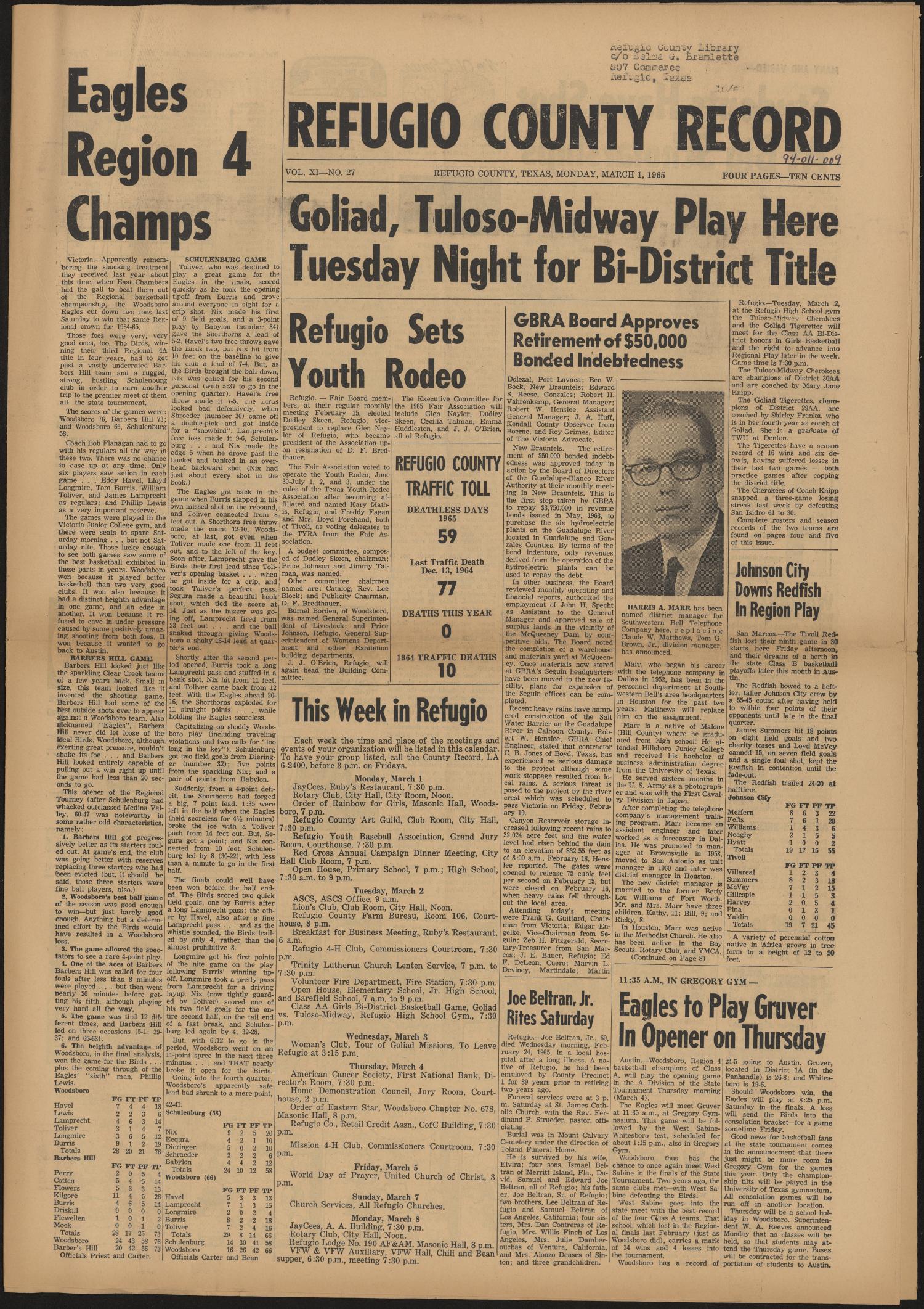 Refugio County Record (Refugio, Tex.), Vol. 13, No. 15, Ed. 1 Monday Refugio Texas News Refugio county has issued a mandatory evacuation for all residents as hurricane beryl is expected to land on the texas coast. The evacuation was announced saturday afternoon by refugio county judge jhiela gigi poynter in a. The storm is expected to make landfall along the mid. 6 in class 2a division i, while sinton is no. 7 in class 4a. Refugio Texas News.