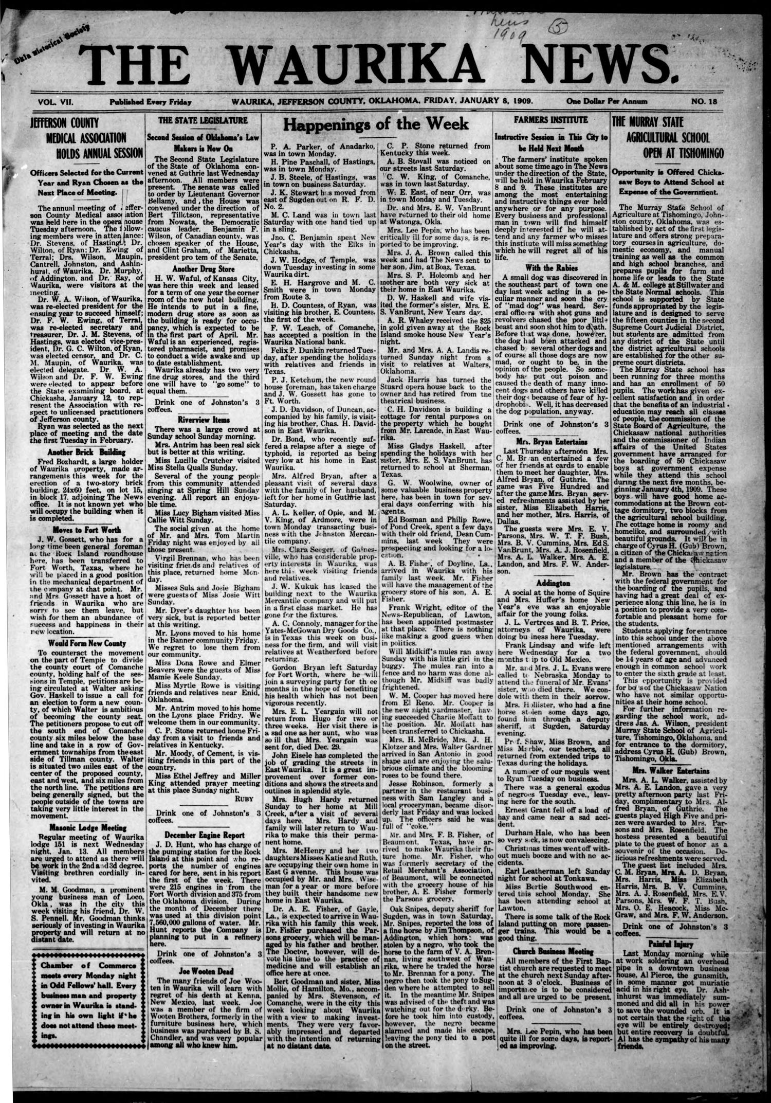 The Waurika News. (Waurika, Okla.), Vol. 7, No. 18, Ed. 1 Friday Waurika Ok History They were as varied as the landscapes they inhabited, from the dense. 34° 9.509′ n, 97° 59.988′ w. A significant historical date for this entry is june 28, 1902. From waurika, oklahoma to either coast there was indigenous culture. Beaver and mud creeks and their smaller tributaries drain the county into the red river. Marker is in waurika, oklahoma, in.. Waurika Ok History.
