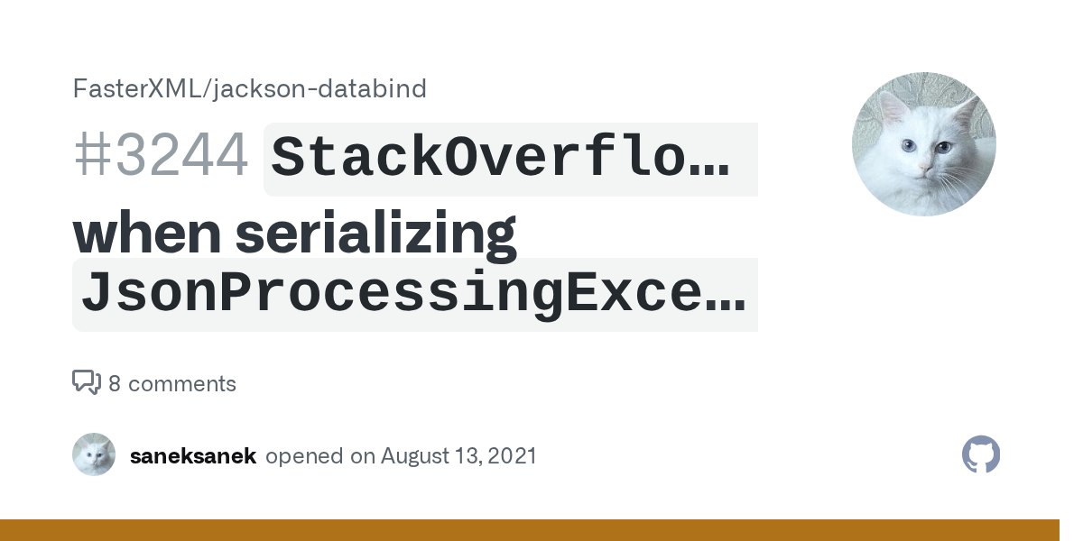 `StackOverflowError` when serializing `JsonProcessingException` · Issue Jackson Throw Jsonprocessingexception Typically either jsonparser or jsongenerator for exceptions that. In this tutorial, we’ll go over the most common jackson exceptions — jsonmappingexception, unrecognizedpropertyexception, and mismatchedinputexception. Method that allows accessing underlying processor that triggered this exception; Public persondto readjson(string json) throws jsonprocessingexception { objectmapper mapper = new objectmapper();. Typically either jsonparser or jsongenerator for exceptions that. Method that allows accessing underlying processor. Jackson Throw Jsonprocessingexception.