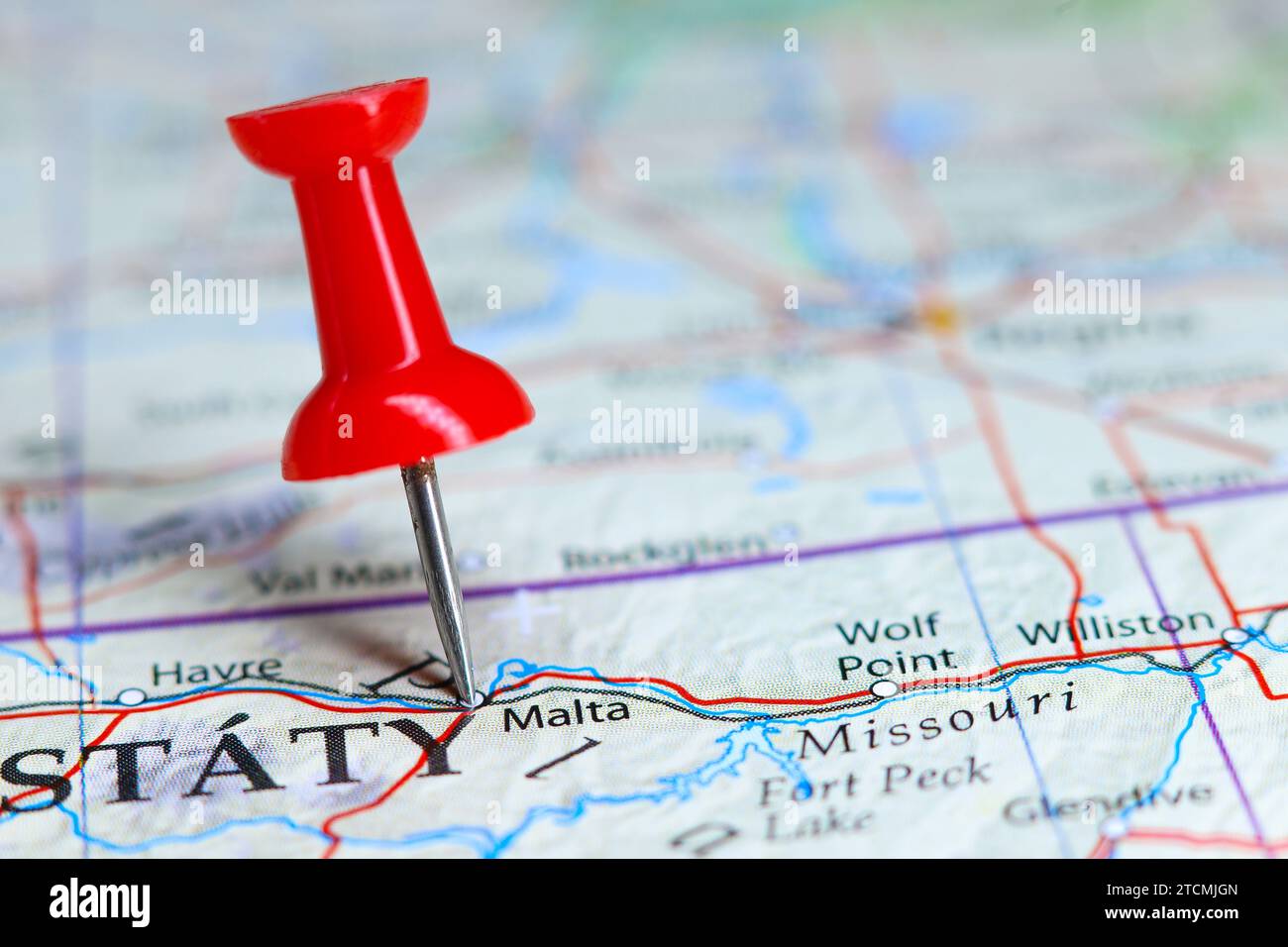 Malta, Montana pin on map Stock Photo Alamy