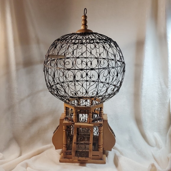 20th Century Victorian Style Wood and Iron "Balloon" Bird Cage Arts