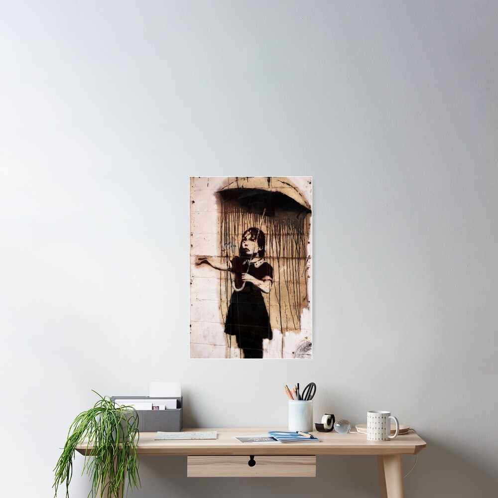 "Girl in the Rain with Umbrella Stencil Art by Banksky" Poster by WE