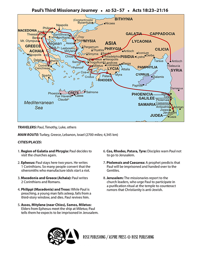 Paul's Third Missionary Journey Map depicting paul's third missionary journey, this map highlights significant cities and events, showcasing the breadth of his. paul's third missionary journey traversed much the same ground as his second (see map). explore the biblical map of paul's third evangelistic journey from 54 to 57 a.d., when he visited galatia, phrygia, ephesus, corinth, macedonia and. explore the. Paul's Third Missionary Journey Map.
