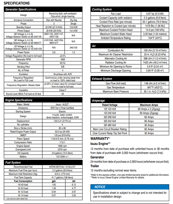 Generator 20KW Diesel Tow Behind Badger Contractors Rental & Supply