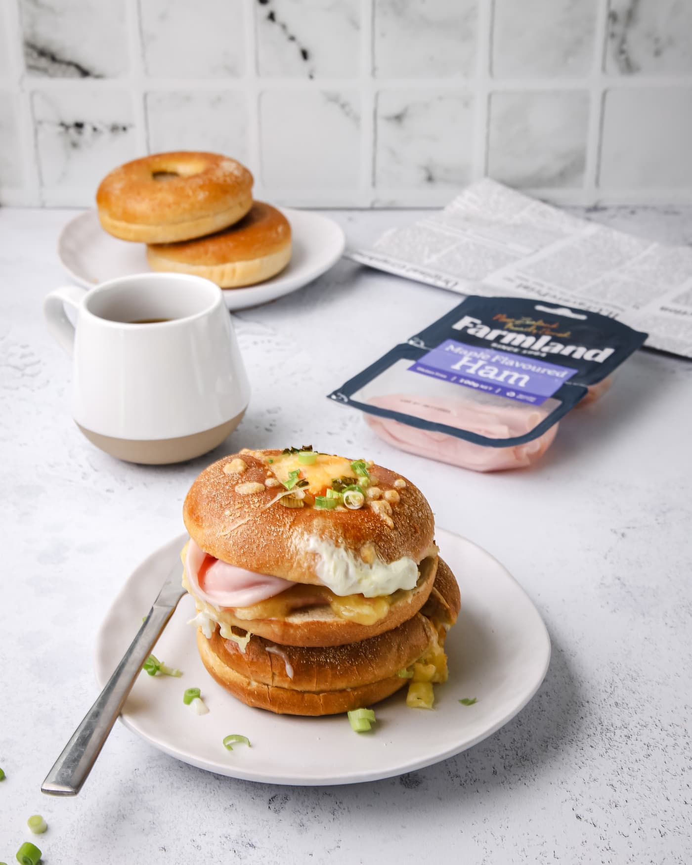 Ham, Cheese, and Egg Air Fryer Bagels / Recipes • Farmland NZ Family