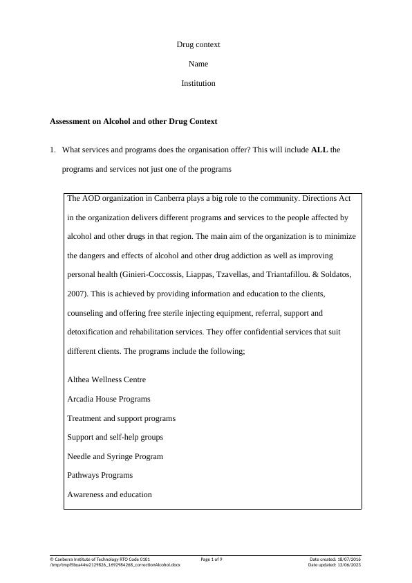 Assessment on Alcohol and other Drug Context Desklib