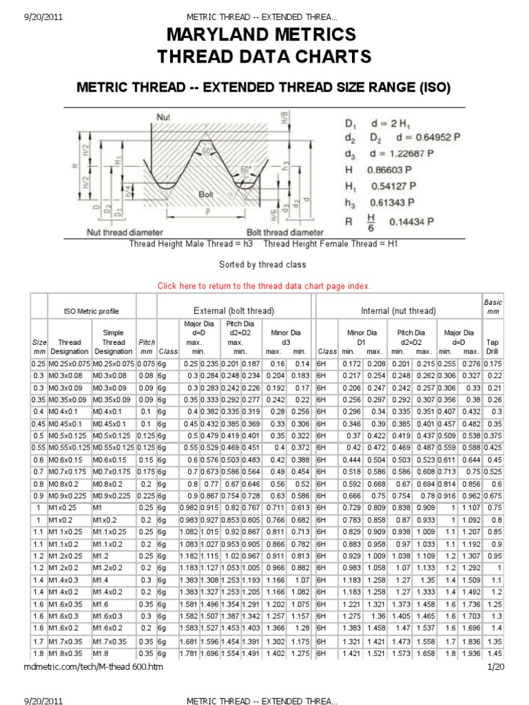 Metric Thread Extended Thread Size Range
