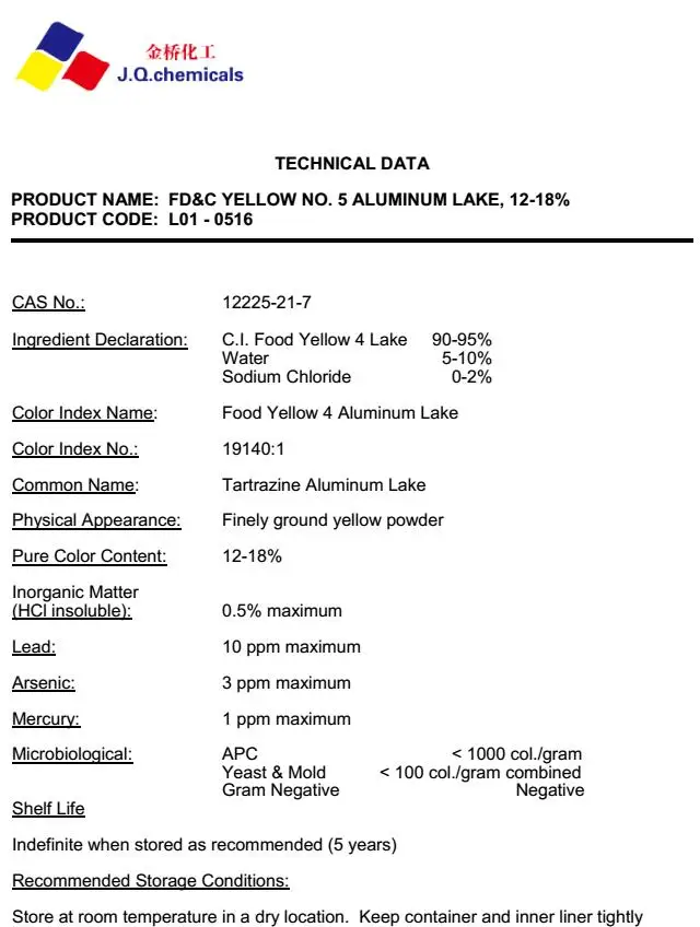Fd&c Yellow 5 Aluminum Lake Food Coloring Powder Ci191401 Buy Fd&c