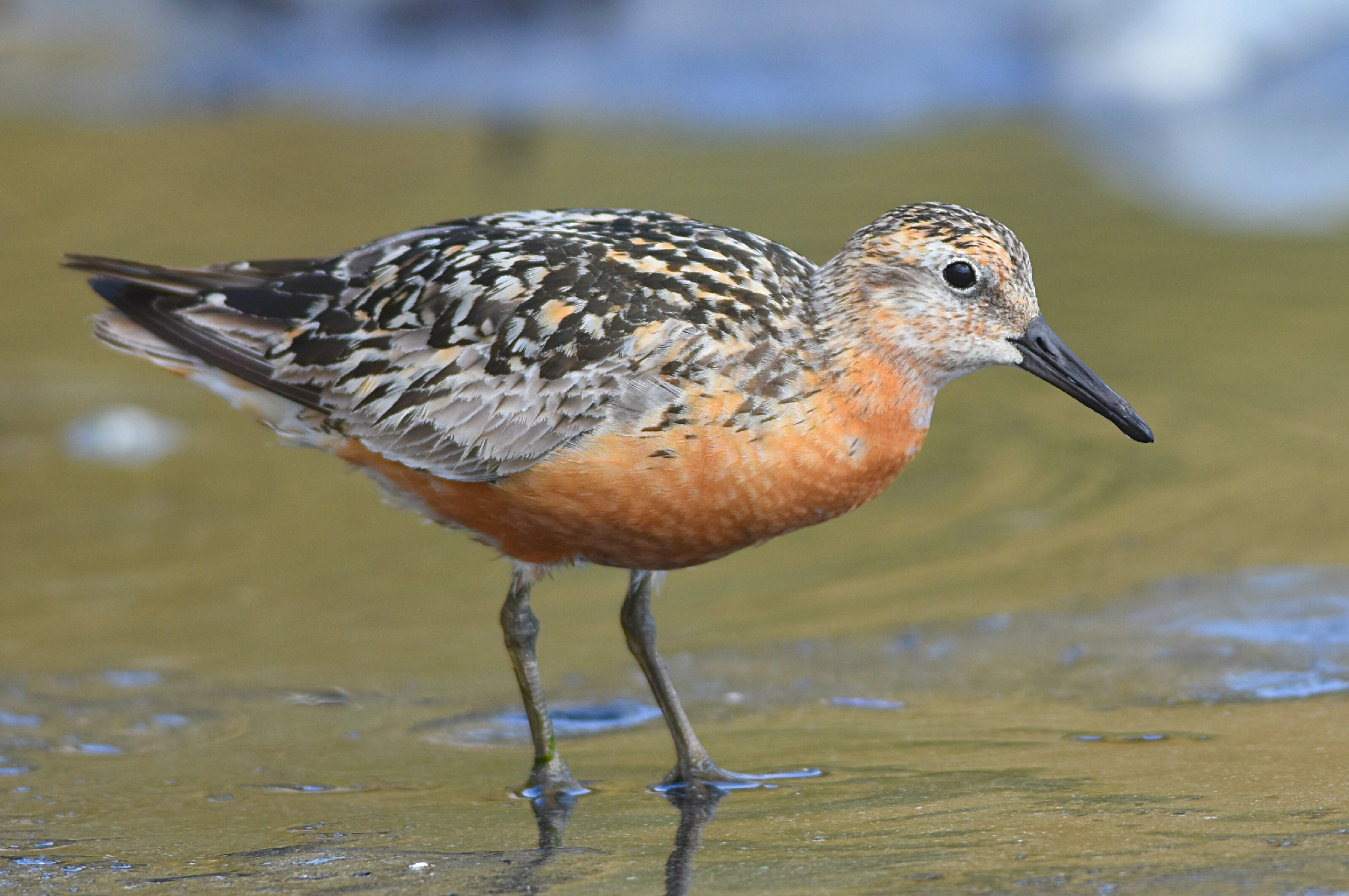 Knot Bird Pictures Beautiful breeding plumage shows entirely. The knot is a dumpy, legged, stocky wading bird. Knots forage and roost on flat beaches, mudflats, lagoons, and estuary edges. In winter, it is grey above and white below. Combination of shape, overall color, and bill size usually distinctive. In flight, it shows a pale rump and a faint wing. Early in the winter,. Knot Bird Pictures.