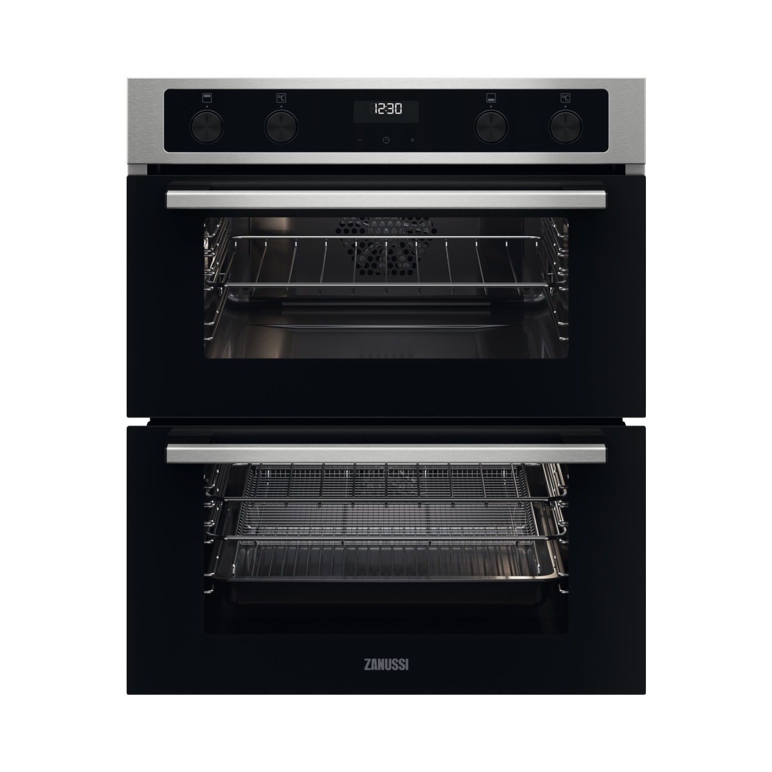 Buy Zanussi ZOA35660XK Double Built In Electric Oven Stainless Steel Zanussi Electric Built In Double Oven With Catalytic Liners - Black Multifunction built under double oven with 9 functions in the main oven, including airfry function, and 5 functions in the top oven. Bake a cake and roast a chicken at the same time thanks to the double oven. Double ovens make multitasking made easy; And, when temperatures reach 250°c the catalytic. Retractable oven rotary controls, touch control clock, minute. Say. Zanussi Electric Built In Double Oven With Catalytic Liners - Black.