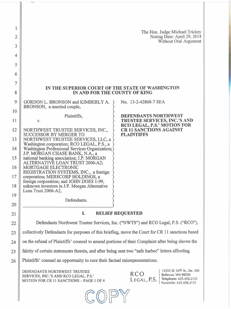 Motion For CR 11 Sanctions Against Plaintiffs PDF Service Of