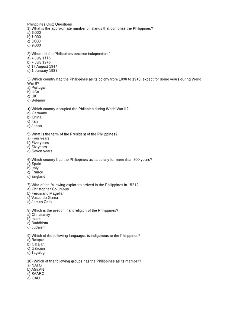 Philippine Trivia Questions And Answers The philippines is a country Philippine History General Knowledge Quiz Find out how much you know about. A historical overview of communications Philippine history (general knowledge) flashcards; Mil lesson 2 from writings on the wall to signals traveling in the airwaves: Test your knowledge of philippine history with this challenging quiz. Test your knowledge of the philippines history with these quizzes on various topics, such as culture, revolution, and geography. Philippine History General Knowledge Quiz.