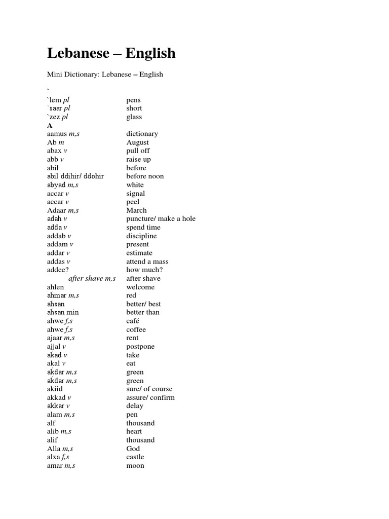 Lebanese English Dictionarydocx Nature Foods Does Lebanon Speak English Learn about the official and regional languages of lebanon, including arabic, english, french, and others. Moreover, lebanese people of armenian or greek descent also speak armenian or greek fluently. Lebanon's official language is arabic, but it is also a multilingual country with french, english, and other languages. Learn how lebanon became a trilingual country with arabic, french and english as. Does Lebanon Speak English.