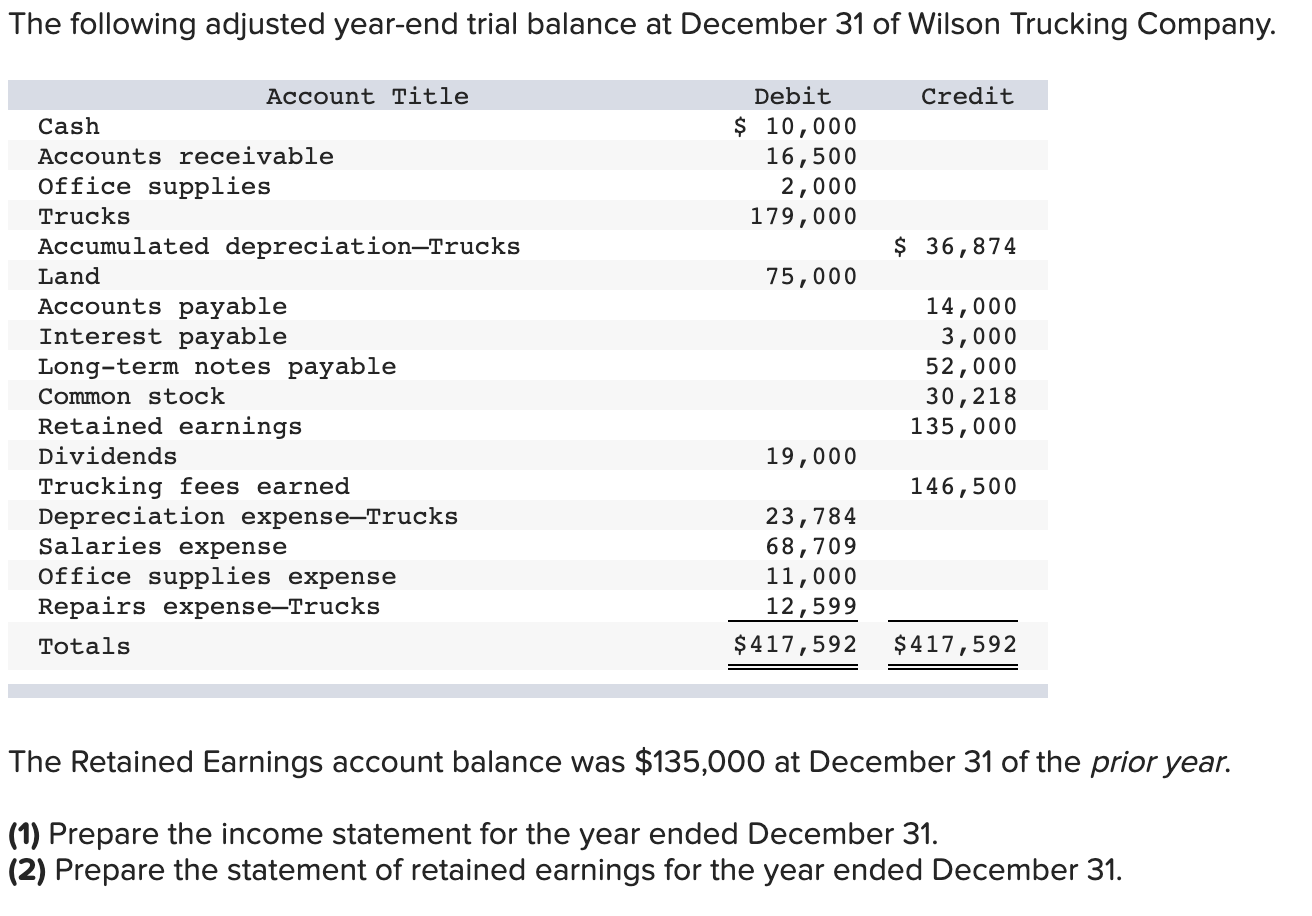 Solved The following adjusted yearend trial balance at